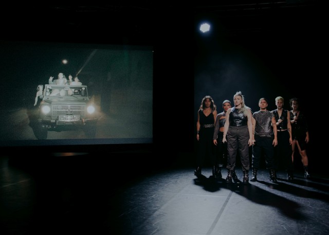 Auf der Suche nach den ersten Feminist*innen beginnt 'THE LAST FEMINIST' in einer dystopischen Stadt, in der das Ende des Planeten realer scheint als das Ende des Kapitalismus. Die letzte überzeugte Feminist*in macht sich als Zeitreisende auf den Weg, auf die Spur verschwundener Kosmologien und ruft gemeinsam mit ihren Gefährt*innen – militante Prinzess*innen, queere Kryptofeminist*innen, emotionale Bitches und postdramatische Hexen* – feministische Erinnerung wach. Sie reimen, singen und rappen, getragen von einer Poetik, die im Scheitern feministische Solidarität sucht. Die multidisziplinäre Performance verbindet feministischen Battle Rap, Performance, experimentellen Pop und Ritual. 'THE LAST FEMINIST' ist ein langes, vielstimmiges Lied in vier Episoden. Es erzählt in Brüchen und Reimen, geprägt von radikaler Verwandtschaft sowie dekolonialen und queeren Perspektiven. Zwischen Konzert und Zeremonie entsteht eine performative Partitur aus Rhythmus, Reim, Refrain und revolutionärer Liebe.
